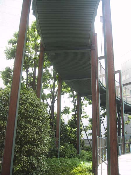 植栽の上をRを描いて昇るフォルムが